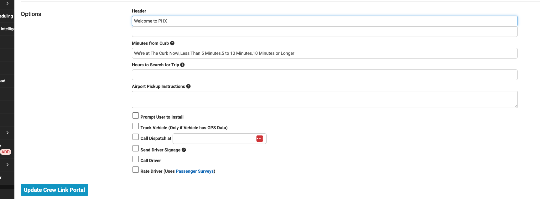 - Customize the “Minutes from Curb” options to match your operation. If crews typically take longer to get through the terminal, add options like “15 to 20 Minutes.”