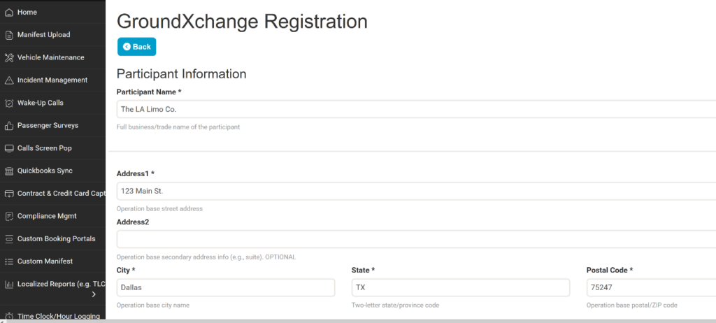 If you encounter any issues during the registration or mapping process, please contact Support for assistance at 972-701-8887 or support@limoanywhere.com