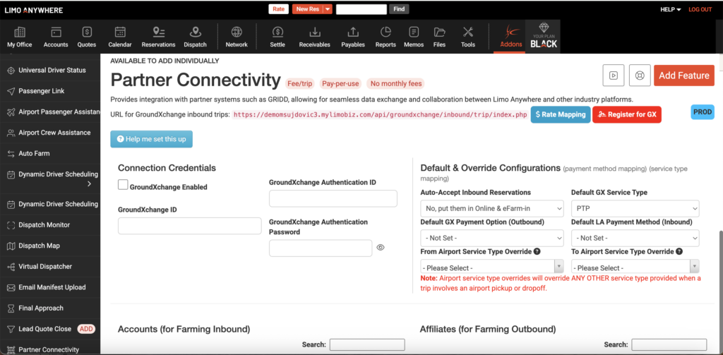 From your operator portal, go to Addons > Settings > GroundXchange.