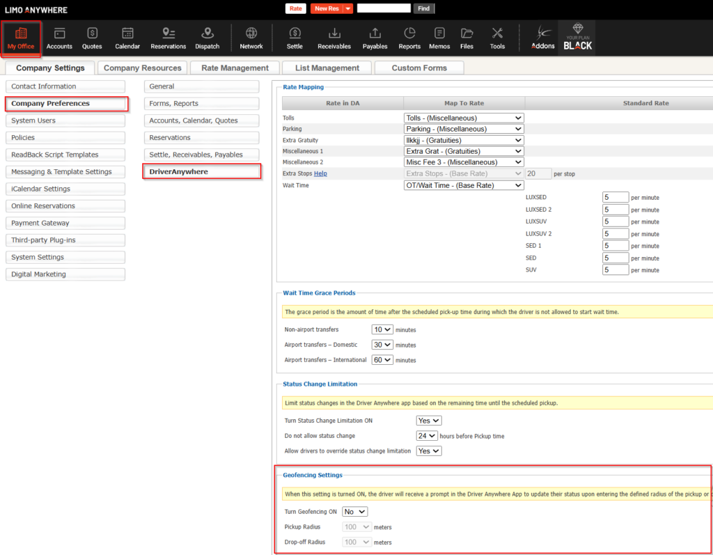 My Office → Company Preferences → Driver Anywhere