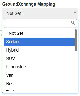 - Select the appropriate vehicle category from the GroundXchange Mapping dropdown list.