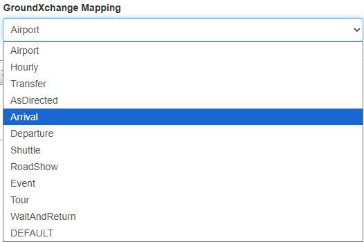 - Default GX Service Type Mapping. This setting is necessary if you do not have a service type in your system that matches properly to GroundXchange. If a trip comes in that does not have a matching service type it will then use the default type that is mapped here. In most cases this will be mapped to PTP (point-to-point).