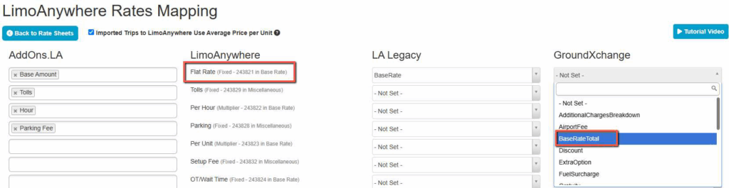 Navigate to Addons>Lead Quote Close>Rate Management>Limo Anywhere Rates Mapping.