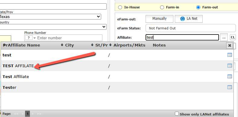- Enter the company name of the Affiliate on the reservation and select it from the suggestion list.