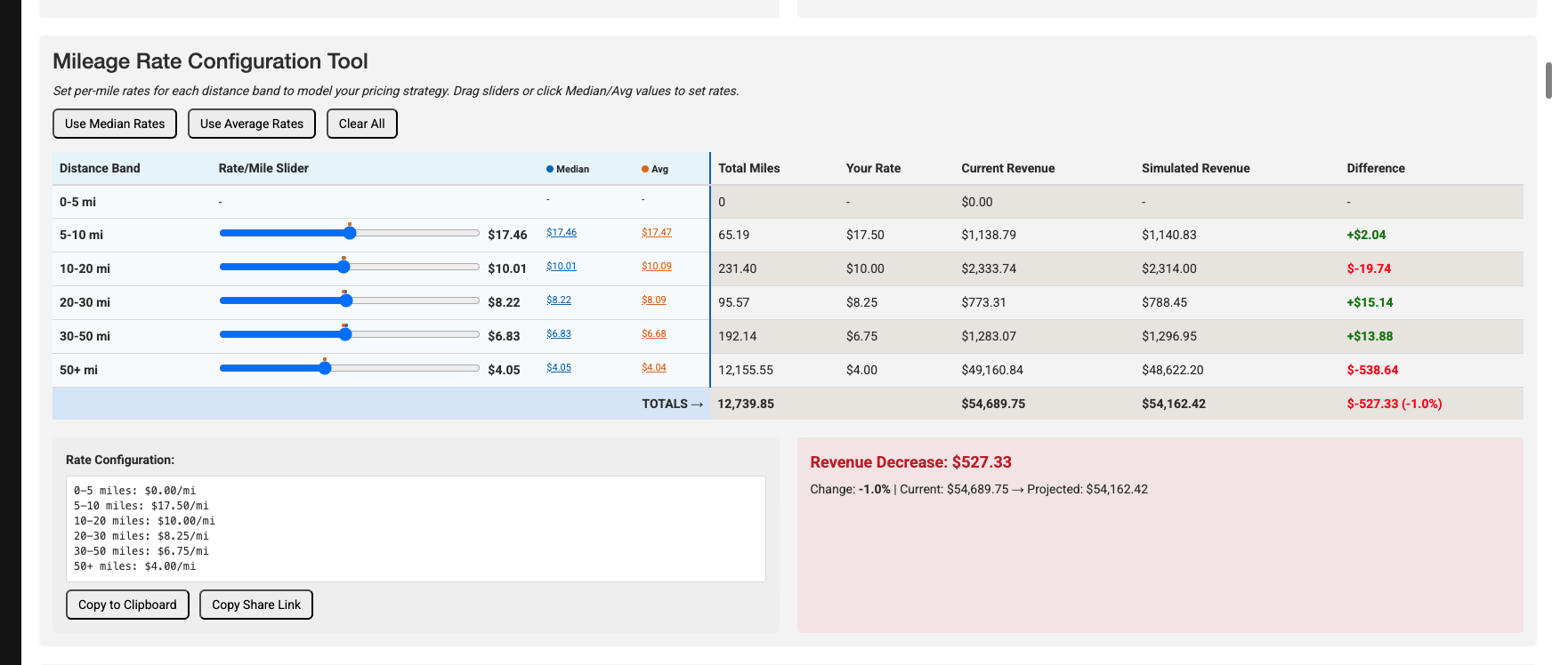 This interactive tool lets you model what your revenue would look like under different per-mile rate structures: