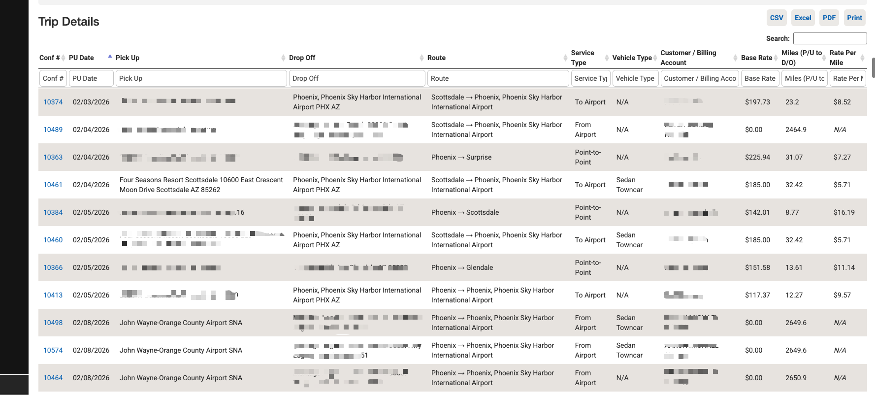 • Base Rate shows $0 — The trip may not have pricing assigned yet, or the charge structure doesn’t include a base rate or flat rate charge (depending on your filter).