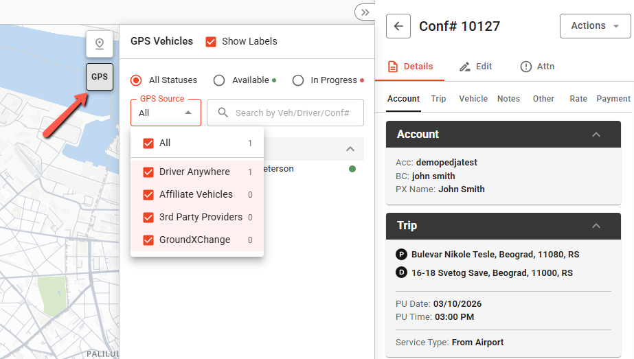 • New Dispatch – GPS: GPS has been enabled and is fully working within New Dispatch. When clicking on a car displayed in the GPS, a pop-up window will appear with information.