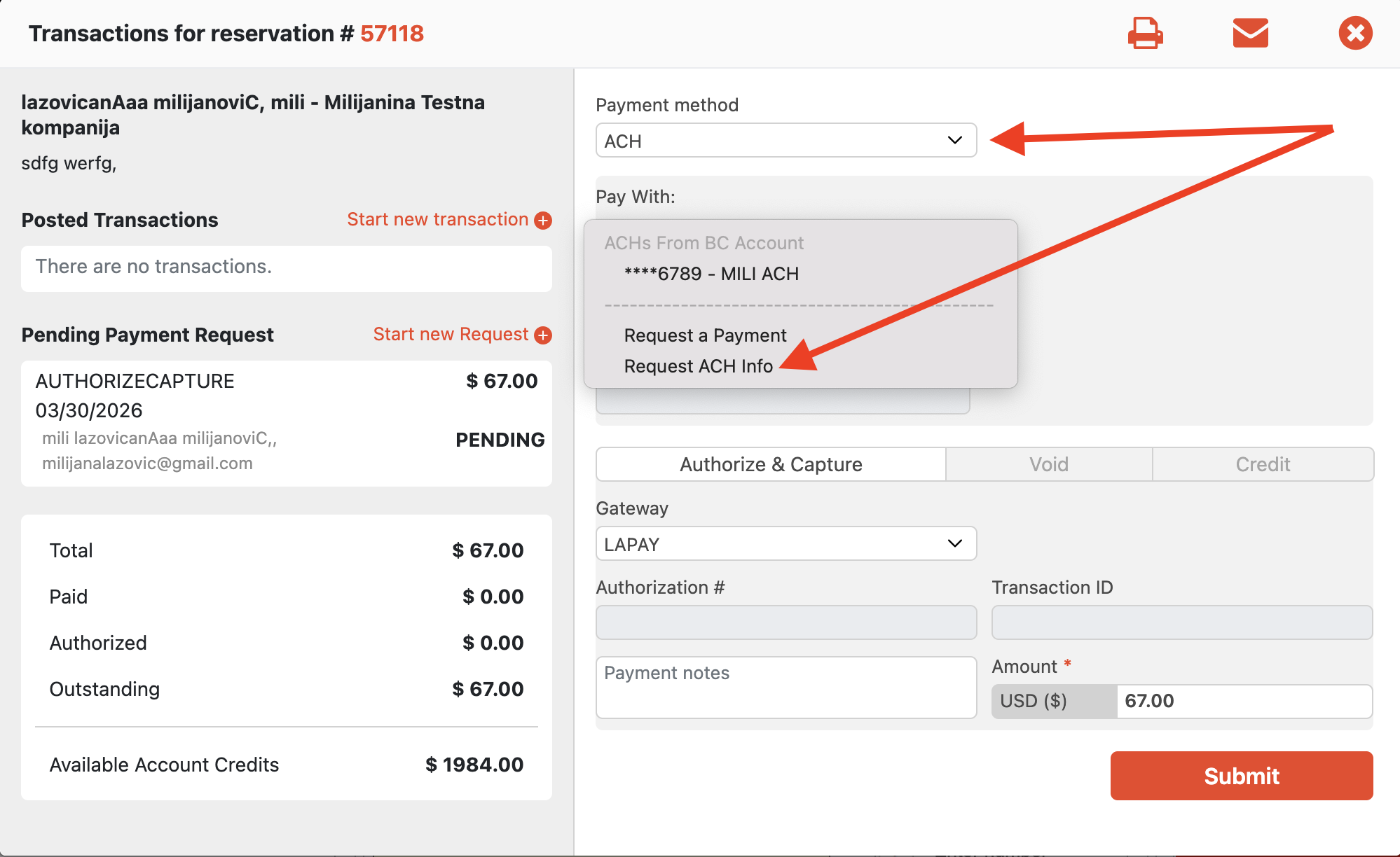 For understanding ACH requests, how they work within Limo Anywhere, and how to complete one, please see: How to Compete an ACH Payment Request